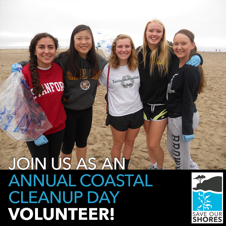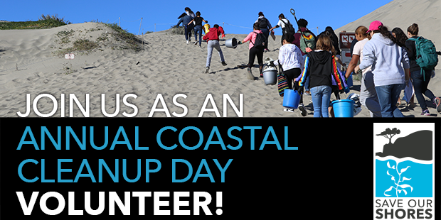 Show how much you love the Monterey Bay, volunteer for Annual Coastal Cleanup Day on Sept 18 &/or help cleanup your favorite places all month long! Save Our Shores hosts dozens of cleanups along the Central Coast on Saturday, September 18th, 2021. By joining us as a volunteer, you will make a positive impact on our beautiful Monterey Bay National Marine Sanctuary and prevent trash from entering the ocean. All cleanups take place from 9am-12pm, but it is suggested you show up fifteen minutes prior to get instructions. For more information or to sign up to volunteer, visit https://saveourshores.org/coastal-cleanup/