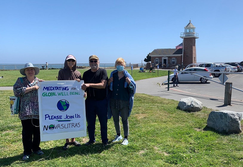Meditating together is a powerful act. Our signs and our intentional presence are resonant messages for hope and action in the reality of climate disruption and biodiversity loss.