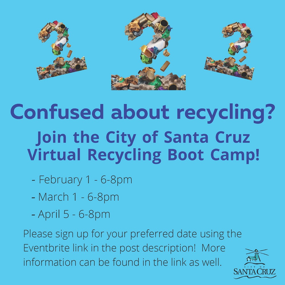 There have been many changes to the recycling industry since China stopped taking most material from the West a few years ago. The curtain has been pulled back to reveal that recycling is more than a symbol, a number and a blue bin. Is recycling still worth it? You bet! We just have to learn to “recycle right.” Join us for an in-depth look at the world of recycling — materials management on a global scale all the way down to our own region here in Santa Cruz. You will find out if you are “wish-cycling” and how to stop, what we recycle, how we recycle and where the items we collect end up.