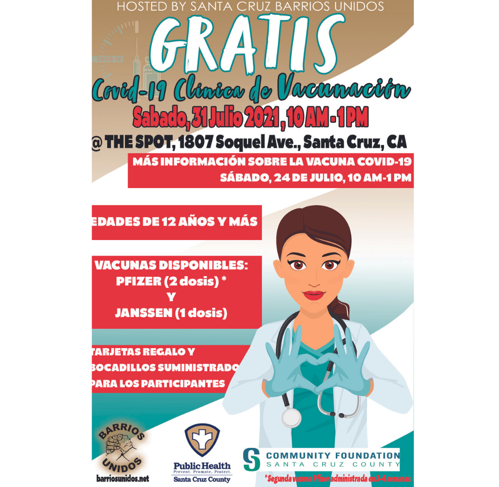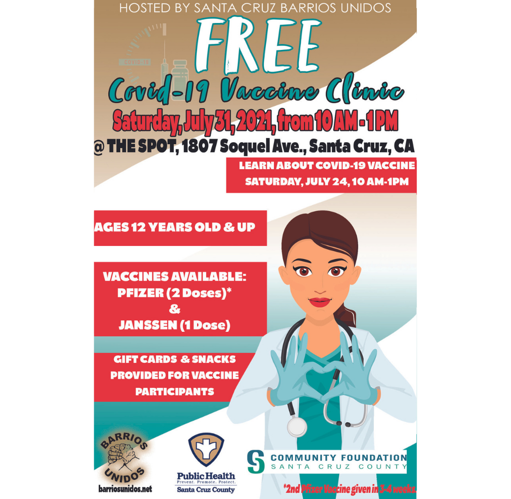 Santa Cruz Barrios Unidos' THE SPOT is hosting a FREE COVID-19 Vaccination Clinic