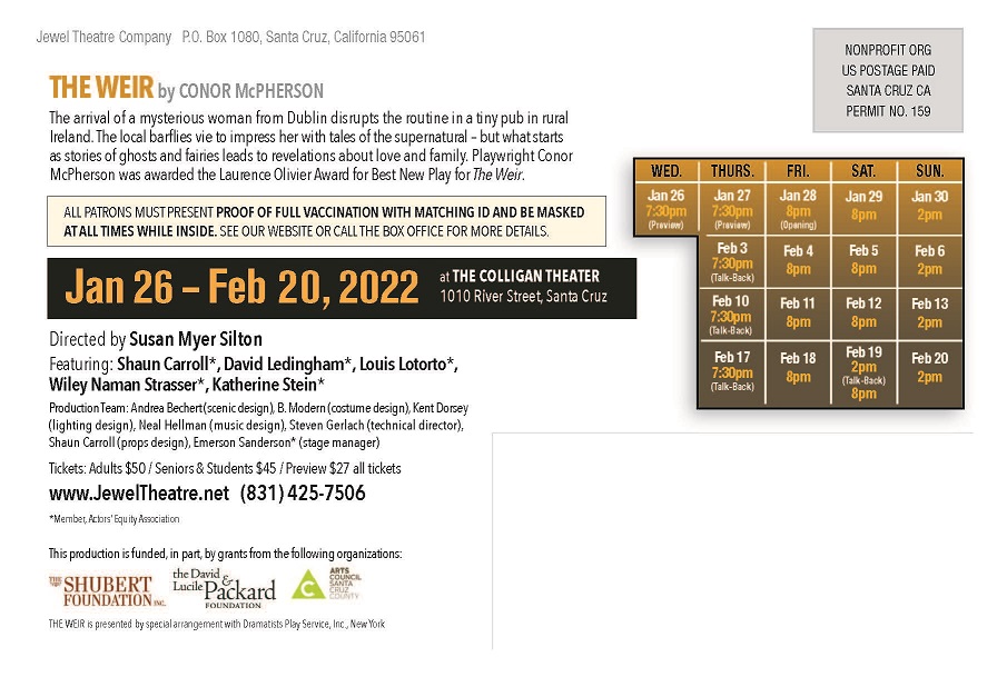The arrival of a mysterious woman from Dublin disrupts the routine in a tiny pub in rural Ireland. The local barflies vie to impress her with tales of the supernatural – but what starts as stories of ghosts and fairies leads to revelations about love and family. Playwright Conor McPherson was awarded the Laurence Olivier Award for Best New Play for The Weir.