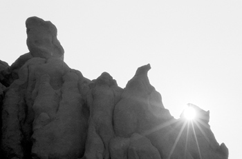 That night we slept under so many stars, they kept me up. A car rolled by our campsite near dawn. In the morning, hiking up into the canyon, we came across two young guys stuck on the road. They were going to dig themselves out, they told us. We noticed they were drinking beer for breakfast. People say that water runs underground out in Death Valley, but a stream spurted out of one of the rock outcroppings near the boys. Suddenly, I wasn't depressed anymore.