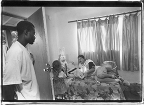 Some Bunny Loves Me: Jacob Ikeokwu looks on while Carey Smith relaxes with his children in their studio apartment at Hidden Court, another motel that takes housing vouchers.