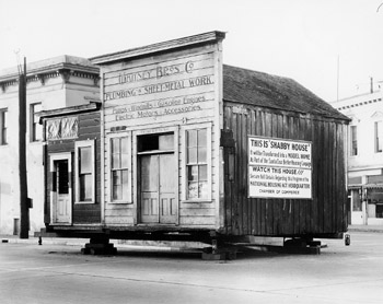 Shabby House: Before, 1936. This building used to be on Front Street, but the Santa Cruz Chamber of Commerce hauled it down to Pacific and Front streets (where Jamba Juice is now). Under the Housing Act it was remodeled on this site and sold. Next week I'll show you how it ended up looking, and ask the bigger question ... where in Santa Cruz is it now?