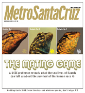 Please don't forget to write! Metro Santa Cruz welcomes letters. Like any great work of art, they should be originals -- not copies of letters sent elsewhere. Include address and daytime phone (for verification purposes only). Letters may be edited for length and clarity or to correct factual inaccuracies known to us. Postal: Metro Santa Cruz Letters, 115 Cooper St., Santa Cruz, CA 95060. Fax: 831/457-5828. Email: