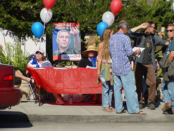 Wesley and Them: Local Clark supporters work the front line during a visit to Santa Cruz last fall by their poster boy, Michael Moore.