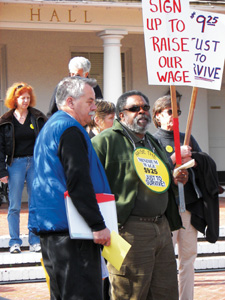 Wage Against the Machine: Councilman Tim Fitzmaurice (left) rallies supporters outside City Hall.