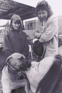 Lickety Do-Dah: S.P.C.A.'s Keri Hack gets in the face of a four-legged friend adopted by Danielle Gallet, 11, and her mother, Renee Gallet.