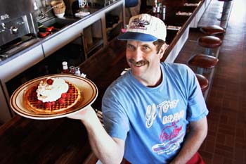 AM Appetite: Owner Paul Begley serves up a raspberry waffle at Beach Street.