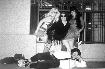 Ladies and Gentlemen, a new kind of mafia is coming to town. The four-chicks-rocking-out-full-tilt kind. They are the Feathers, and though they may not carry violin cases or bust up kneecaps just for kicks (I've seen them break a drumstick or two, though), have no illusions about these four girls from San Jose--they will rock your world. They've got quite the local following over yonder hill, and at the coaxing of some loyal fans living in SC, they've decided to test the waters (so to speak--I make funny, hehe). The Feathers have been called "a thinking woman's L7," which goes a long way in explaining why I never got L7, not being much of a thinking woman myself. But where L7 gets lost in a wall of distorted sound, the Feathers keep their tunes stripped down and feisty like the bad girls should. They may not be as bad as the other band on the bill this evening--The Highway Murderers--who (lucky for us) reportedly only murder highways ... hence the name. Both bands are playing at the Mediterranean on Feb 22 , so come on out and make God Feather, Feather Tuscadero, Tardan Feather and Feather Faucet feel welcome, and then be sure to stick around for a dose of the bloodthirsty sonic doom of the Highway Murderers.