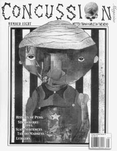 CONCUSSION NO. 8. This is Deputy Phineas T. Hogg of the SCPD. While arresting a skater doing ollies over helpless canes at the Mid-County Senior Center, I confiscated the eighth issue of Concussion. Eight is enough! Slap that "Skateboarding is not a crime" sticker on your mom's station wagon, but you're in serious violation of city ordinance. Hobby or sport, skateboarding is vandalism on wheels.