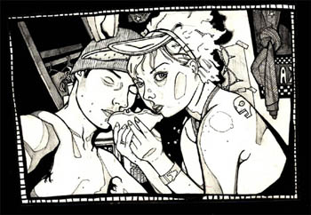 "Being sick and coughing up blood just isn't cool," she continues. "I quit smoking because I want to be able to do this for a lot longer. I'm not at the point I wanna be as far as my drawing skills, as far as anything--there's so much more I wanna learn. I guess I partially gave up smoking for this. Because other than the friends that I have in my life, this is what I got. It's like my rock to cling onto, you know?"