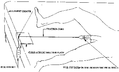 but instead got the rack: 10 pounds of weight at night to keep his penis from retracting