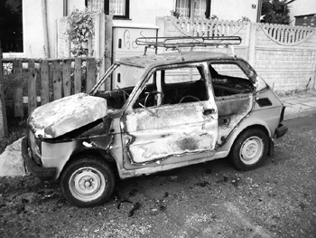One doesn't see much press covering this odd phenomena, mostly because journalists don't want to spark copy cats or glorify these acts. Some people think car burning is just a game for the youth, but perhaps it is the need to walk outside the line of civil society--that unlovely side of human desire that reveals itself as a warning.