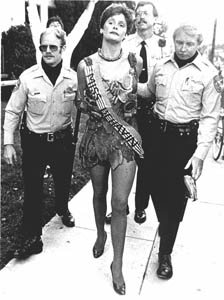 Since then, Simonton hasn't slowed down or toned down a bit. She's been arrested 11 times for her nonviolent and flamboyant protests. She captured national attention in 1982 when she wore a dress made of meat to denounce the Miss California Pageant, which used to be held in Santa Cruz. In one of the most effective statements known to feminism, Simonton and her cold-cuts sheath eventually sent the pageant packing.