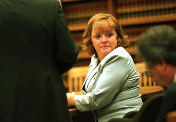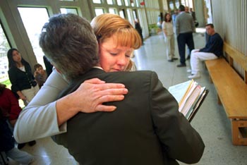 Judging Laurie: Laurie Flower hugs her attorney, Tom Worthington, outside the courtroom after her sentencing.