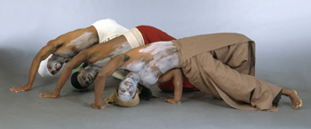 "I use stuff that's in my consciousness," he says, "so if it is from Brazil, I'm not taking it specifically from Brazil. It may be from Brazil, or it may be a choice that one of the dancers might make, to move in that way. But most of the movement, I just created it, and of course whatever comes out is a reflection of my influences and the things I've been around, the things that I've seen. But it's not about me going to Africa and taking movement from Africans and saying 'OK, we'll put this in here.' But rather, how do I still get that same feel with the movement that I'm just going to create on the spot?"