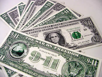 They're called Bush Bucks, or Deception Dollars, and they look remarkably like the real thing--except they carry Bush's mug shot instead of George Washington's, say "In Fraud We Trust" and list websites that reportedly "reveal tender, public and private truths about 9/11 and the war on freedom."