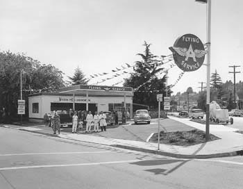 Gas Station Opening, Corner of King and Mission Streets, 1957: You could say this corner is a real 'gas' corner. It converted from petroleum to novocaine because now there's a 'new' suite of dental offices there. That doesn't look like King Street because there are only three cars on it.