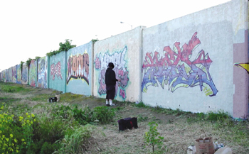 "Society makes up all this crap about graffiti, so people don't see the positive side. It's like the war on terrorism," says Powell. "You're never gonna make walls safe from graffiti by painting them white. Whitewashed walls attract taggers, whereas if kids see a cutting edge mural, they're gonna be awestruck. So what the city is doing in covering up graffiti is pointless. A lot of the kids who get caught up in gangs get out of them by doing graffiti."