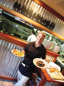 Mystery Spot: Chris Bernardi tries to keep the food from sliding off the plates as he negotiates