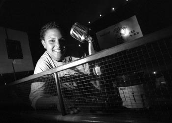"I try to use a little bit of everything," she says. Her club sets swing from hip-hop to diva-centric, groovy R&B to funk, all equally workable as a backdrop for a social scene or as fodder for a bumping dance floor. "People really like to hear happy hip-hop, but they also turn me on to other things. Right now I have everything from hip-hop to 'The Beer Barrel Polka.' "