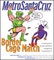 Please don't forget to write! Metro Santa Cruz welcomes letters. Like any great work of art, they should be originals -- not copies of letters sent elsewhere. Include address and daytime phone (for verification purposes only). Letters may be edited for length and clarity or to correct factual inaccuracies known to us. Postal: Metro Santa Cruz Letters, 115 Cooper St., Santa Cruz, CA 95060. Fax: 831/457-5828.