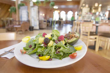 After making the steep trek upward, we took in the expansiveness and headed over to the counter to browse the large menu board. The prices are all reasonable--$2.95 to $9.95--and the seasonal selections offer mostly vegetarian options but a good amount of carnivorous ones as well, such as the buffalo burger, classic chef salad and red curry prawns. Big bowls of fresh and colorful produce sat atop the counter in front of the semiopen kitchen, emphasizing the farmers market citations throughout the menu.