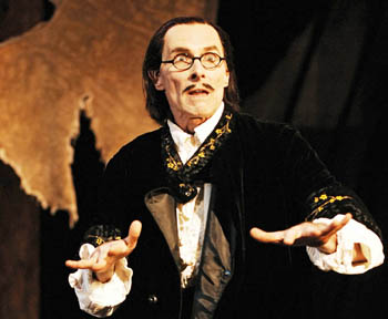 Though consumed with ale and cakes, this pair, along with Olivia's servants, are primarily concerned with the undoing of Malvolio, Olivia's uptight and moralistic steward. James Winker, who played Malvolio in SSC's 1996 production of Twelfth Night, reprises the role to show-stopping effect. Dressed in undertaker black, Winker's Malvolio, with a slight change of setting, would be ready to prosecute Salem's witches.