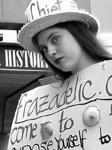 But slowly and surely, the epicenter of our attention in Santa Cruz shifted back to its usually spot a couple of thousand miles west. Six weeks after the terrorist attacks, the River Street Sign, which had the audacity to be erected the day after Sept. 11, became a lightning rod of cognitive dissonance. Once that was taken care of, a snowball of collective wrath plowed into the Peace Park, which was shot down for being "antiwar."