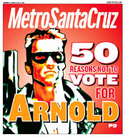 Please don't forget to write! Metro Santa Cruz welcomes letters. Like any great work of art, they should be originals -- not copies of letters sent elsewhere. Include address and daytime phone (for verification purposes only). Letters may be edited for length and clarity or to correct factual inaccuracies known to us. Postal: Metro Santa Cruz Letters, 115 Cooper St., Santa Cruz, CA 95060. Fax: 831/457-5828. Email: