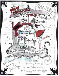 In the face of such monumental human calamity and suffering, it might appear myopic to lament the loss of New Orleans' unique artistic community, but when the levee broke and covered the the Ninth Ward in a tepid bath of sludge and toxic waste, that detritus spilled over the homes of innumerable artists, musicians, puppeteers and painters whose lifestyles relied upon New Orleans' unique combination of low rent, cultural diversity and more than enough bars to keep your Kurt Weill�inspired cabaret project in work throughout the sticky summers.