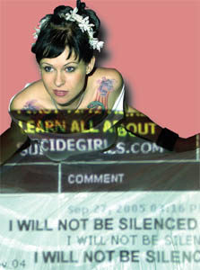 For a site whose selling point is empowering strong, opinionated women, Suicide Girls has always kept a tight reign on its electronic charges. Former model Apnea says that in her days as a Suicide Girl back in 2003, "they warned the girls about talking to the press. They said that you can talk to them, but that reporters will manipulate what you say."
