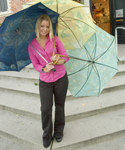 Overprepared: Looks like no rain is getting to Deneka Shile, thanks to umbrellas from the Museum Shop at the Museum of Art and History.