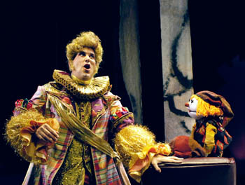 A Muppet to His Madness: Irwin Appel as the hopelessly stupid Emperor in Shakespeare Santa Cruz's holiday show.