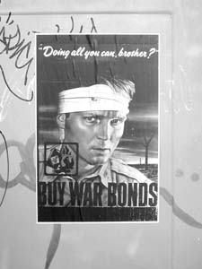 Following last week's piece about "pro-war flyers," Nüz found one such posting which read "Doing all you can, brother?" near the office. Closer inspection revealed the tag "hazmat1203" in the bottom left-hand corner, apparently a reference to the group responsible, but in any case a cute little bit of cyberchic.