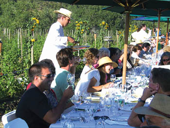 Last summer's alfresco wine dinner at Sand Rock Farm Inn provided a chance to visit with local legends Val and Dexter Ahlgren, and to sip the mighty 1999 Ahlgren Cabernet Sauvignon Bates Ranch. But the supple cab was even more wonderful paired with a plate of rare Kobé tri-tip on a bed of Yukon gold potatoes infused with black olives and smoked bacon. Kudos to chef Lynn Sheehan.
